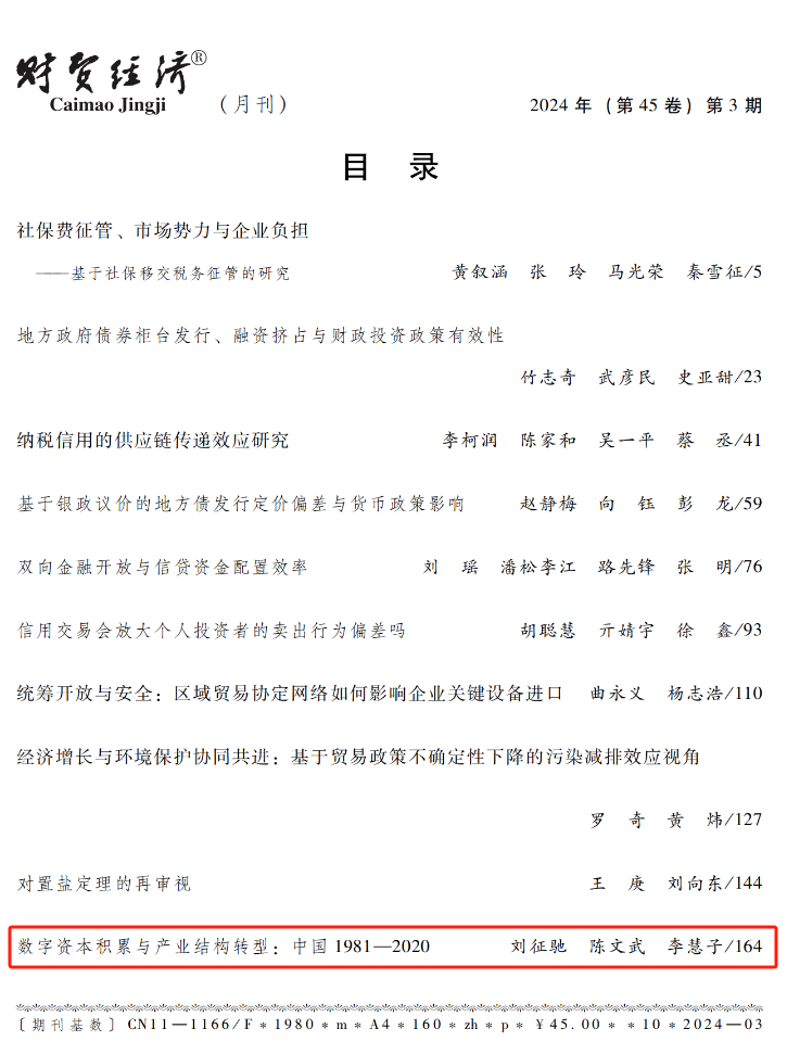 刘征驰教授、陈文武、李慧子博士合作撰写的学术论文《数字资本积累与产业结构转型:中国1981-2020》在《财贸经济》2024年第3期刊出。《财贸经济》期刊是是中国社会科拉斯维加斯