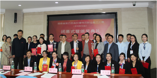 湖南省教育厅党组成员、省委教育工委专职委员陈飞跃,省委教育工委宣传部部长曾力勤,省委教育工委宣传部副部长李林芳,省委教育工委宣传部副调研员崔恒源,湖南省高校辅导员工作研究会会长、我校党委副书记陈伟等出席并为获奖选手颁奖。