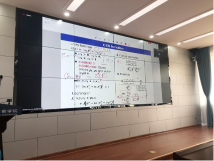 博士生及硕士生共54人参加了本次授课。课上曾教授首先对空间经济学发展的背景、历史以及理论脉络进行了介绍,之后在此基础上讲授了CES函数的理论基础和相关数学推导。授课过程中曾教授与同学们积极互动,针对课程中的难点进行了重点讲解,同学们反映良好,授课顺利进行。